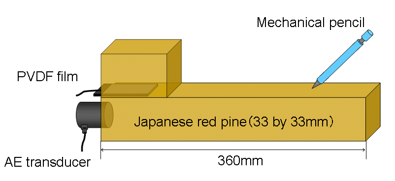 ![]() Fig. 1. Detection of artificial AE by PVDF film or AE transducer |