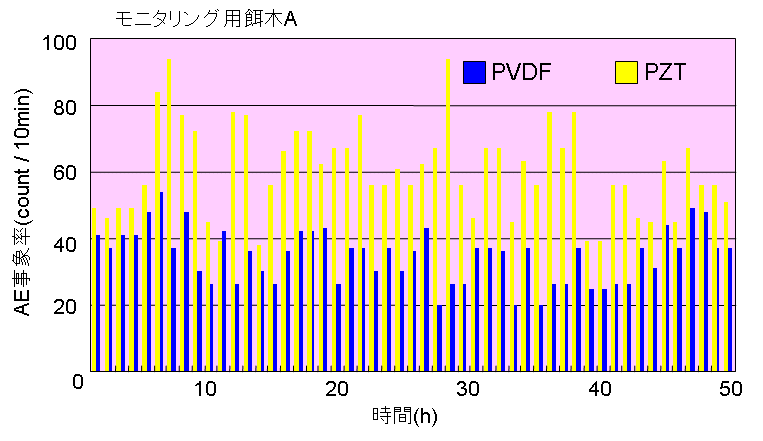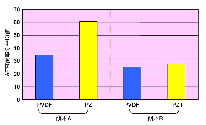 ![]() Fig. 6. 餌木A, Bにおける各センサで検出したシロアリ食害AEの事象率の平均値の比較 |
